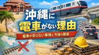 沖縄に電車がない理由を、戦前の鉄道消滅、米軍統治下の道路整備、地理や人口分布、建設コストの面から整理。沖縄に電車がない理由と、慢性的な渋滞の背景、ゆいレールの役割、観光で使いやすい移動手段、今後の鉄軌道計画までわかりやすく丁寧に解説します。