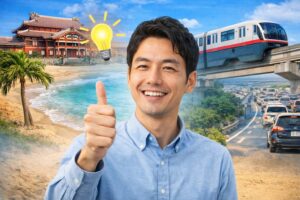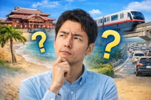 沖縄の移動は、那覇中心ならモノレール+徒歩+タクシー、郊外や北部ならレンタカー、路線が合うならバス、という使い分けがいちばん現実的です。電車がないこと自体よりも、「その代わりに何をどう組み合わせるか」を考えたほうが、実際にはうまくいきやすいですよ。